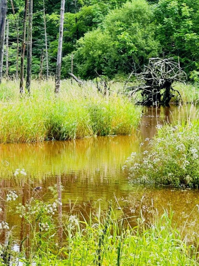 ②蛤蟆沟:山谷溪流中盛产长白山林蛙,俗称“哈什蚂”、“雪哈”,是一种名贵的药用动物,清朝皇室称其为“八珍”之一,每年春、秋两季当地山民捕捉后制成珍贵的雪蛤油。附近还有片“野生越橘园”,只有一片绿色。