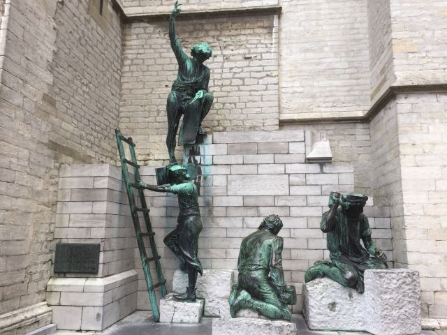 而今在大教堂外面广场的一角已由后人建造了Nello和Patrasche的雕塑