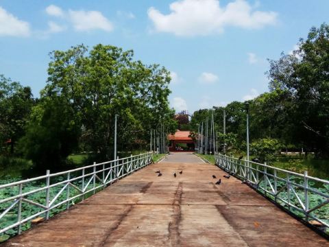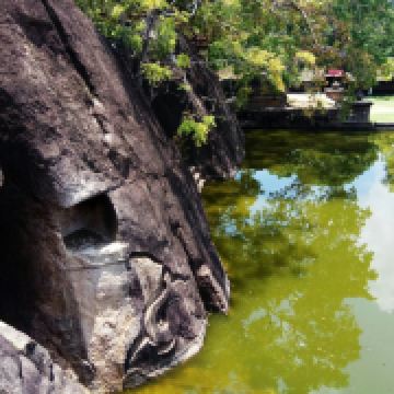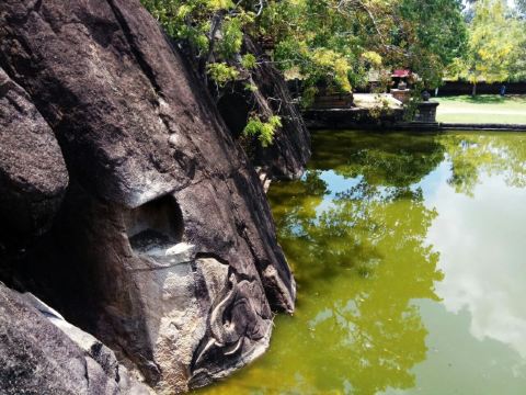 寺庙前面有一座可爱的莲花池塘,在一个由Tissa Wewa供水的方池旁的石壁上,有一两件作品(包括大象戏水),是从这里初建时便立于此,不过其他的大多数已经被搬到了寺庙里的一座小型博物馆中。相比其他热门景点,伊苏鲁姆尼亚石庙里人流量较少,寺庙比较静谧。