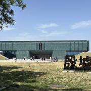 建筑设计方面,经过全球征集评选,新馆采用了华南理工大学何镜堂院士的设计方案,以《诗经·商颂》为源,以绿野草台、鼎立大地、层叠深邃、青铜装裹为形,以绿色低碳、可持续的发展模式为要,形成具有殷墟文化内涵和考古学意义的“中华之范、文明圣殿”。