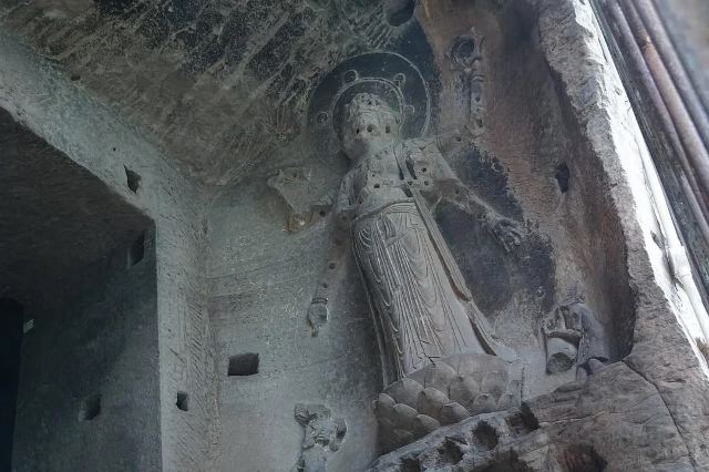 3.在去看卧佛的路上,左手边会有一些被破坏非常严重的时刻,千万不要忽略他们,随手一拍可能就是一张与众不同的大片。特别是左侧上方被围起来的刻经洞,仔细观察人是可以进去的,进去之后会有非常大的惊喜,我当时因为攻略没有做到位而因此错过和擦肩。