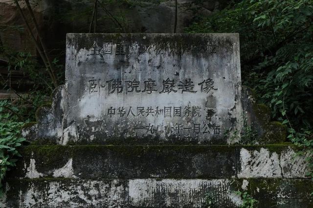 卧佛院始于盛唐,最早造像题记为开元十一年(公元723年),大规模造像刻经在唐开元年间,至南宋后逐渐衰退。卧佛院在长约一公里的卧佛沟两侧高约20米的崖壁上,存留着大批刻造于唐代、五代、宋代的摩崖石刻造像和石刻佛经,现有文物编号126个,摩崖造像1613尊,石刻佛经15窟,现可辨清40余万字。碑刻、题记、经幢、珍禽异兽数十处。造像题材多达57种。主要有:释迦说法图、涅槃经变、三身佛、弥勒佛、千佛、石刻佛经等。卧佛院尤以构图奇特,立意新颖,雕工精绝的“左侧卧佛”闻名于世。