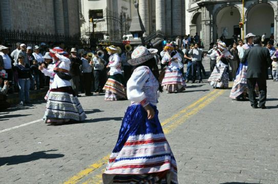 广场中央设有一座喷泉,清澈的泉水在阳光照耀下闪烁着光芒,为广场增添了几分灵动之气。这里是当地人和游客休闲的好去处,人们可以在广场中央的板凳上休息,欣赏周围的美景,或是投喂来往的鸽群。每周日,广场上还会举行升旗仪式,庄严肃穆,吸引着众多市民和游客前来围观。此外,广场周边旅行社、酒店、餐厅、特产店林立,方便游客们探索阿雷基帕的方方面面。