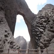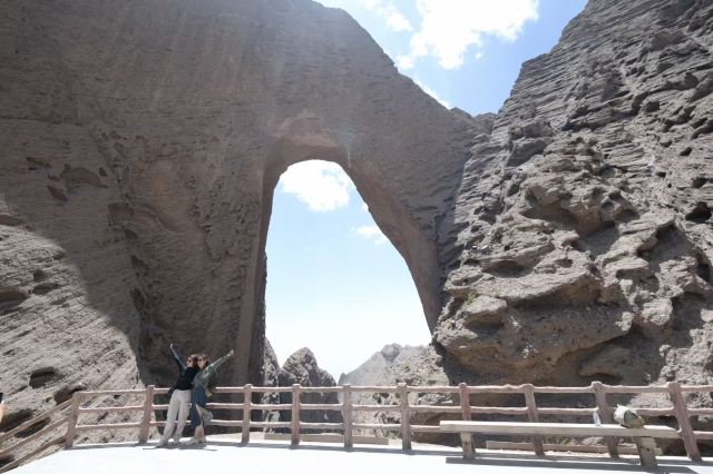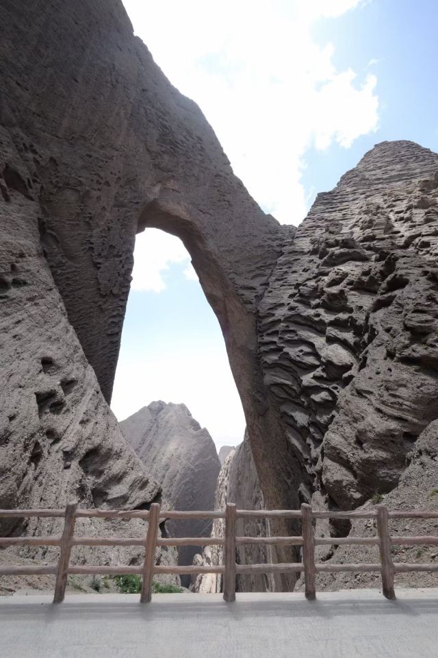 阿图什天门:作为景区标志,是世界高的天然石拱门,呈“∩”字型,宽约100米,高约500米,气势恢宏。