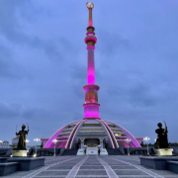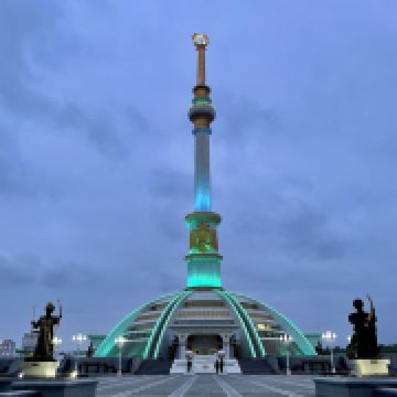 “独立纪念碑”,该建筑的设计灵感来自传统的土库曼帐篷和土库曼女孩佩戴的传统头饰。该建筑的元素是为了纪念土库曼斯坦的独立日——9 月 27 日。