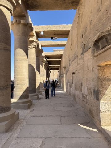 坐小船上岛,走进菲莱神庙。2300年前的神庙原样肯定看不到了,岁月无情地摧残着世间的一切,可相比差不多年代的我国秦代被付之一炬的阿房宫,菲莱神庙是幸运的,她保留着基本完好的巨大石柱和庙墙。神庙的主人是女神伊西斯,她顽强抵御着时光的磨难,依旧在石壁上展示她完美的形象。