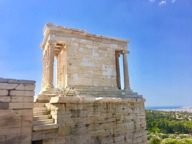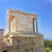 建于公元前427-424年间,以此纪念雅典人在波斯之战中取得胜利。这座小巧精致的神雕由的设计者之一卡利特拉提斯(Kallikrates)主持修建,在之后的战乱中,屡遭浩劫,其屋顶和部分装饰物已被损毁,但神殿的主体结构依旧被完整地保存下来。目前仅可从外面一睹神殿风采,无法入内参观。