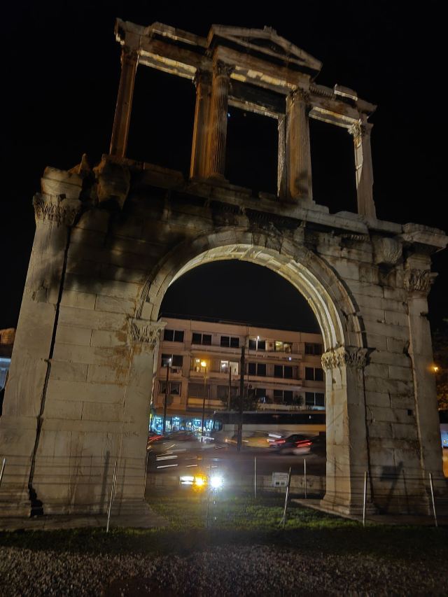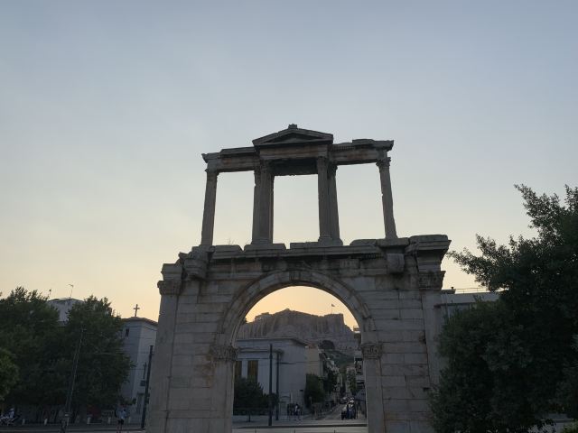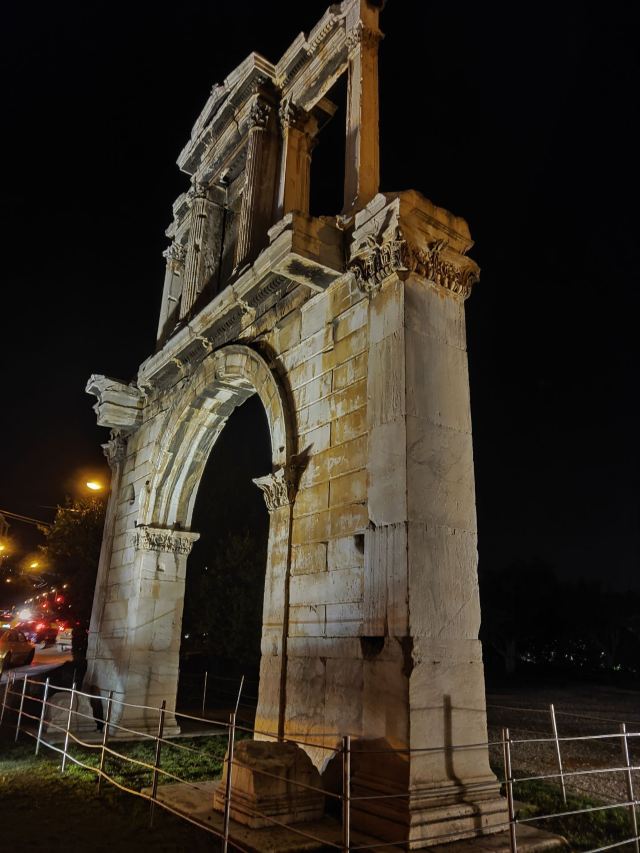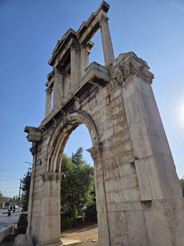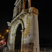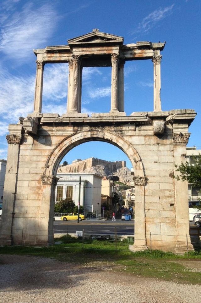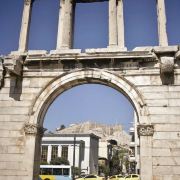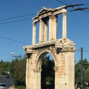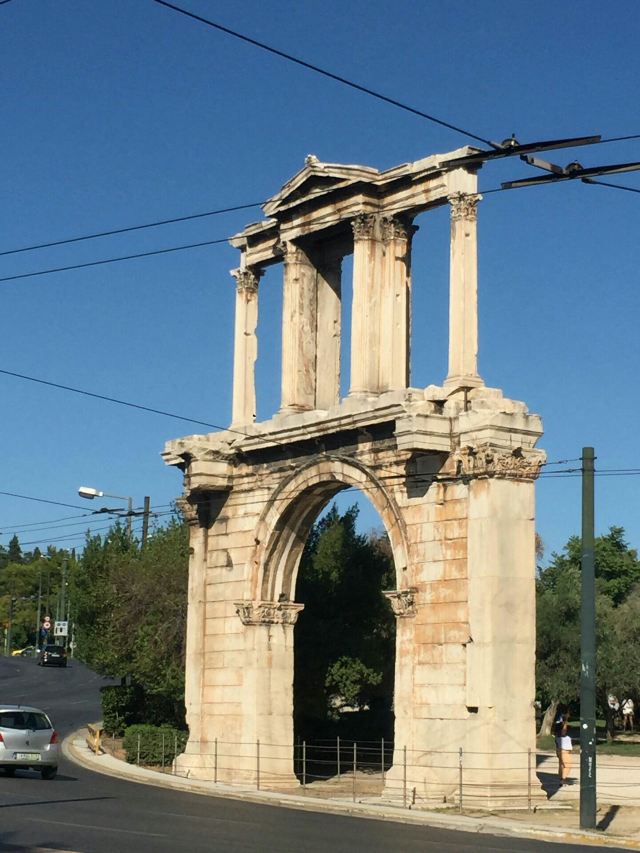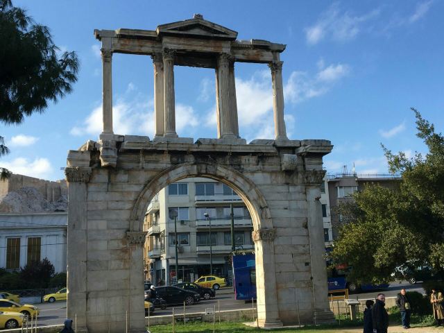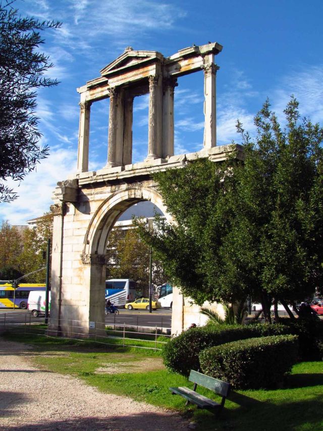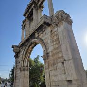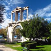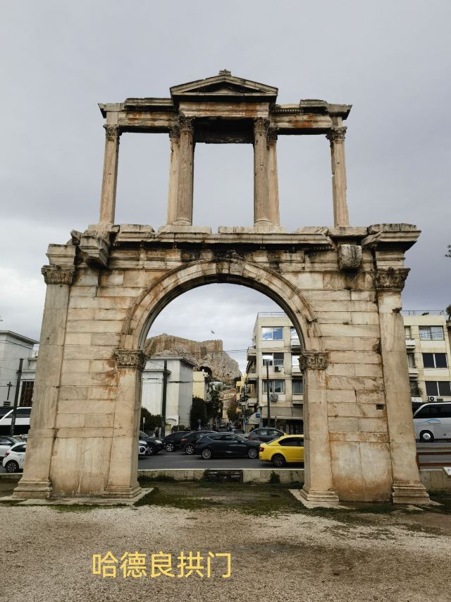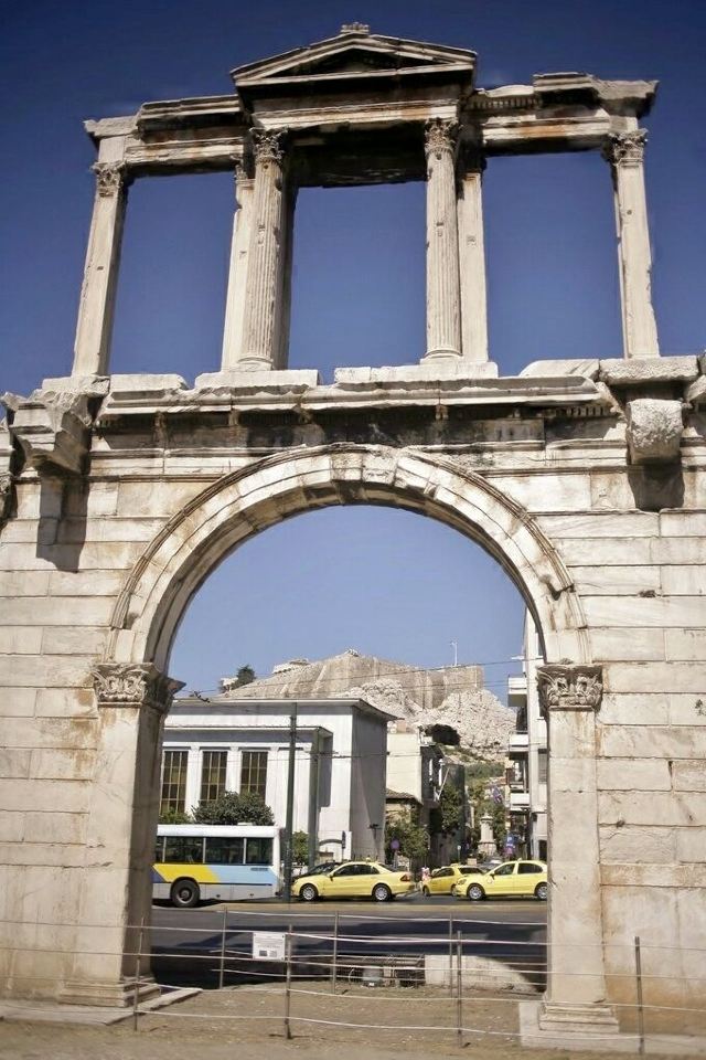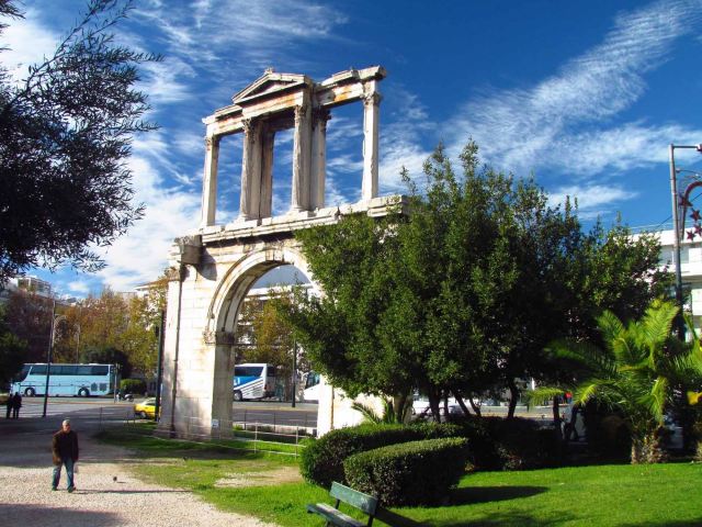 哈德良拱门建于132年,是罗马时代遗存的建筑。拱门位于雅典围城东南方不远处,横跨雅典中心一条古老的道路,相传是标明雅典古城和新城之间的界线,拱门的正反两面雕刻的文字也分别称忒修斯和哈德良为雅典古城和新城的创建者。