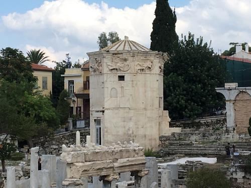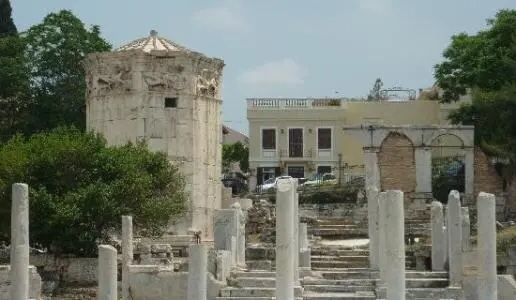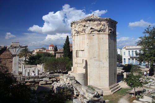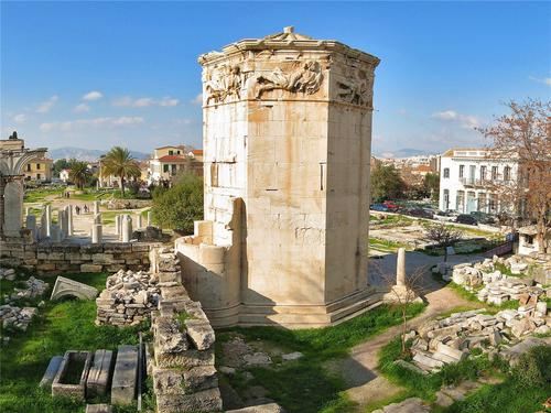 风之塔位于雅典现存两处古市场遗迹之一的罗马市场内,这是一座八角形的大理石建筑,它被后世认为是储藏着巨大魔法的地方,但实际上是由1世纪叙利亚天文学家建立的气象站。