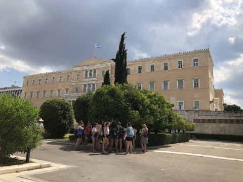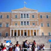 议会大厦于宪法广场旁,无名战士纪念碑的北面,这里原是希腊第一代国王奥托的王宫,由德国拜恩州宫廷建筑师加卢道纳设计建造,于1942年完工,使用至今。议会大厦并不对外开放,游客无法入内参观,只能在广场上远远欣赏这座美丽的建筑。