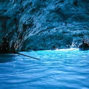 蓝洞是卡普里知名的景点,甚至说很多人去卡普里的目的就是为了蓝洞也不为过。由于洞口的特殊结构,使得洞里的海水一片晶蓝。蓝洞表层的海水呈现幽幽的深蓝色,而深层海水却是天蓝色的,海水映衬得洞中的岩石也都一片蔚蓝。天气晴朗的时候,蓝洞分外美丽和妖娆。