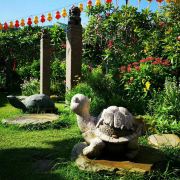 大士殿侧有放生池,池分上下二级,上为鱼池,下为龟池。龟池里的龟,身形巨大,密密麻麻,有好几百只,引无数游客前来观赏投喂。