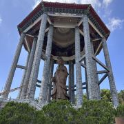 寺的左后山丘平台上矗立着一座高30米左右的万佛塔。塔分7层,它的设计融汇了中、泰、缅三种不同的建筑风格。距塔不远的一个小山头上雕建了一座大型观音像,像高10余米,身姿优美。
