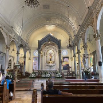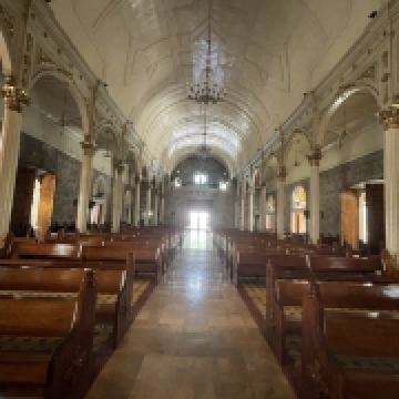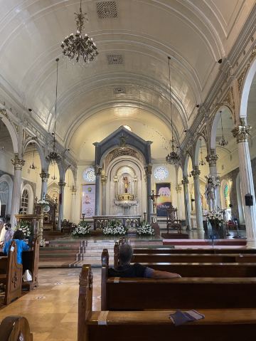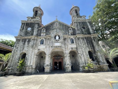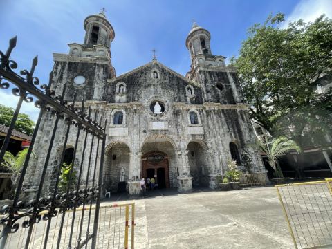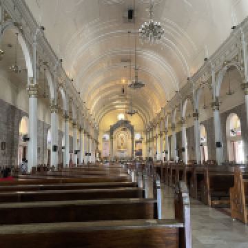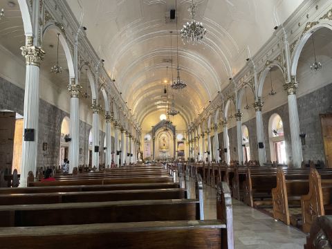 这是一座非常漂亮的教堂,由珊瑚石建造而成,内部有枝形吊灯,周围还有公园。