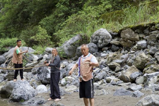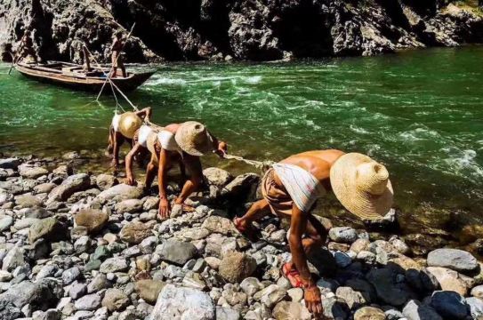 当地不需要纤夫很多年了,但因为旅游文化,特意保留了这个表演形式,拉船的都是50-60岁的老龄人,让人产生很多社会的问题。