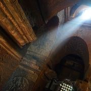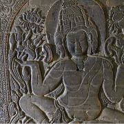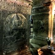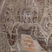 在南帕耶寺有限的空间里,房间中央的四根石柱上雕刻着精美的创造之神——梵天的浮雕像。梵天造型饱满,手持莲花,面带微笑,栩栩如生。这里的雕刻类似于在柬埔寨小吴哥看到的风格,不知道是不是类似时代的产物?