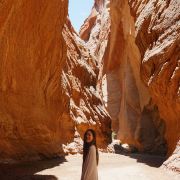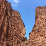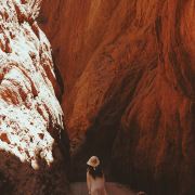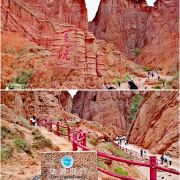 1、“天山神秘大峡谷”是一处雅丹地貌大峡谷,被评为“中国最美十大峡谷”之一,又称“克孜利亚大峡谷”,维吾尔族语中意为“红色的山崖”,红彤彤的山崖粗犷陡峭如熊熊烈火,形成于1.4亿年前的中生代白垩纪,全长5公里多,1999年被发现并开发,峡谷内的古佛窟、清泉、风声等神秘深邃,成为酷夏时避暑探秘的好去处。峡谷号称“中国版科罗拉多大斜谷”,是《天地英雄》、《七剑下天山》、《九州缥缈录》等影视剧的取景地。