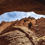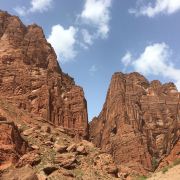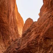 天山神秘大峡谷又叫克孜利亚大峡谷,位于新疆阿克苏地区库车县北部。克孜利亚维吾尔语意是“红色的山崖”,这是因为大峡谷由红褐色的巨型山体群组成。天山神秘大峡谷红褐色的山体群直插云天,在阳光照射下,犹如一簇簇燃烧的火焰。