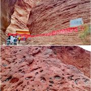 ①小洞:“显灵洞”、“藏宝洞”、“灵光洞”(又名“观音像”,因时常呈现光亮而得名,此区域毗邻“圣泉池”,常有灵异事件发生,比如地上白雾、奇怪声响,成为峡谷中最神秘的地带,所以洞名处系着不少祈福彩带)等,是在悬崖石壁上的天然洞穴,因为上不去,里面具体有什么看不到。
