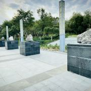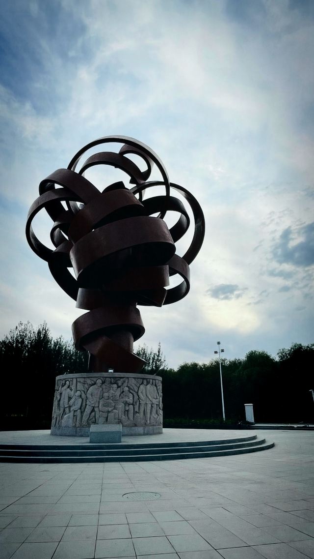 《能·源》雕塑位于主题公园的东北角。造型以“一采场”外轮廓为整座雕塑造型轮廓,在巨石中段镶嵌一条铜水纹肌理带。坚硬的巨石与流动的铜水,形成刚柔对比与相济结合,使观者在追溯创业者艰苦奋斗历程与巨大成果中,产生无限崇敬的感慨与感动。