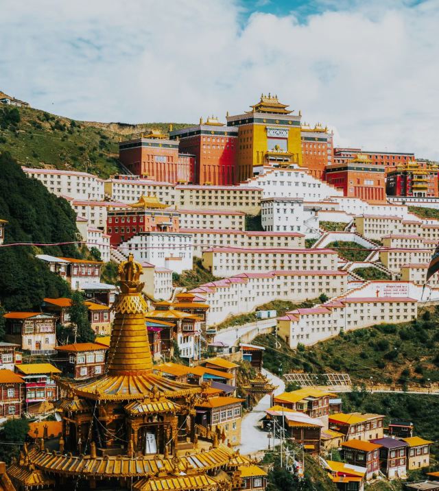 - [13天前] 积极考拉 发表了甘孜藏族自治州资讯 甘孜白玉寺依山而建,占地广阔,主殿金顶按坛城样式分三层(底层莲花生、中层四壁观音、三层释迦牟尼),含
