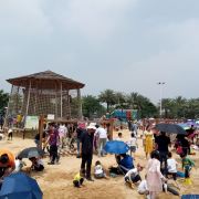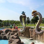 玩法: 广州儿童公园还比较大,一进大门口,萌萌哒的大门可以拍照留念,里面直走有个水乐园,有恐龙等怪兽。大门左手边进去有个沙滩乐园,喜欢玩沙的可以去,公园里面绿地很多,也有许多的树木,绿化很好。