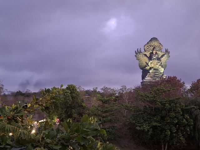 2003年印尼政府开始动工建设神鹰广场文化公园,计划在山上建造一座印度教中的“破坏神”与其坐骑神鹰的雕像,整体高度将达到100多米。据传一位高僧曾指点苏哈托,这座铜像铸成之后将庇佑印尼国运昌盛、人民幸福平安,但广场还未建成苏哈托就下台了,于是这个耗资巨大的工程就此搁浅,“破坏神”的上半身、手以及神鹰的头部便散落在广场的不同地方。