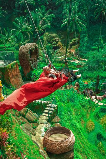阿拉斯哈露姆秋千位于一个非常受欢迎的农业旅游目的地-伦加·特加拉朗 ( Jl. Lunga Tegallalang),距离乌布市中心约20分钟。这个地方将为您提供许多活动,如制作卢瓦克咖啡的步骤、秋千、天空自行车和许多打卡拍照的地方。这些地方拥有迷人的美景,如私人露台、玻璃地板、鸟巢、舞蹈桥。此外,阿拉斯哈露姆秋千还有印度尼西亚壮观的卢瓦克雕像。