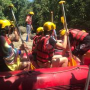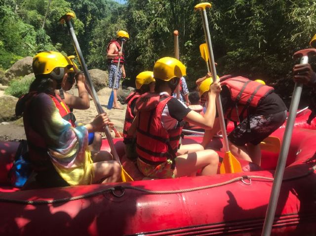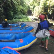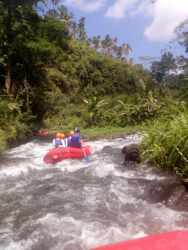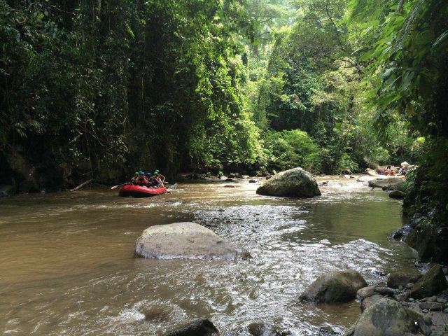 5分 超棒阿勇河漂流在巴厘岛非常受欢迎。阿勇河河岸高峻,植被繁茂,大部分河段水流都较平缓,我们可以安心饱览美景;也有多处激流河滩,十分惊险刺激,当时咨询了地接很多问题,最终定了漂流一日游,因为一般要向漂流公司报名参加漂流,要选择规模较大的漂流公司,设备比较完善,舵手经验也更丰富,更能保障安全,另外,各公司运营的河段也不太一样,定的时候可以详细咨询,我们最后定的是双人包船(一般好像4-6人一船的)