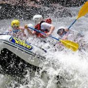 ▴ 在岛上最长的河流中展开泛舟之旅,迎战一个接一个的激流。