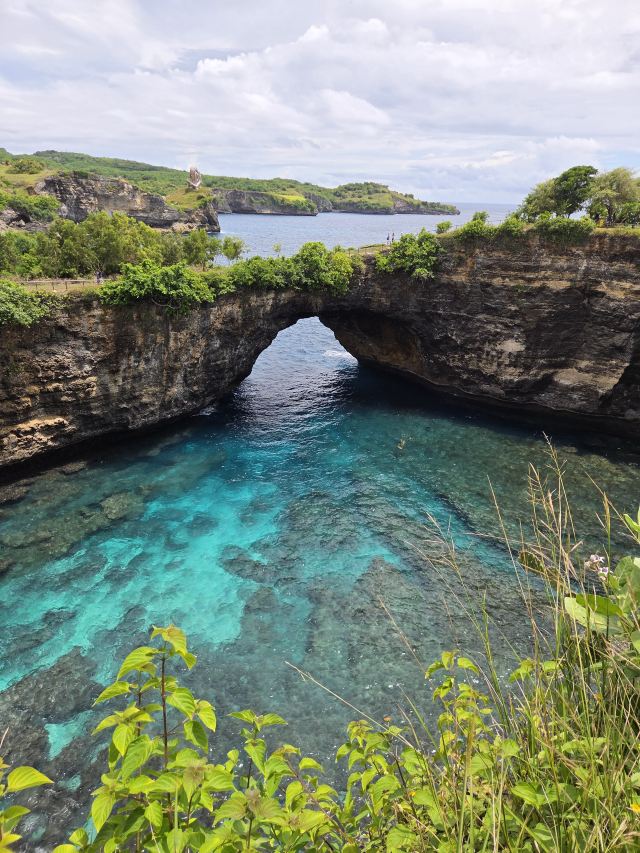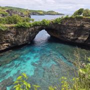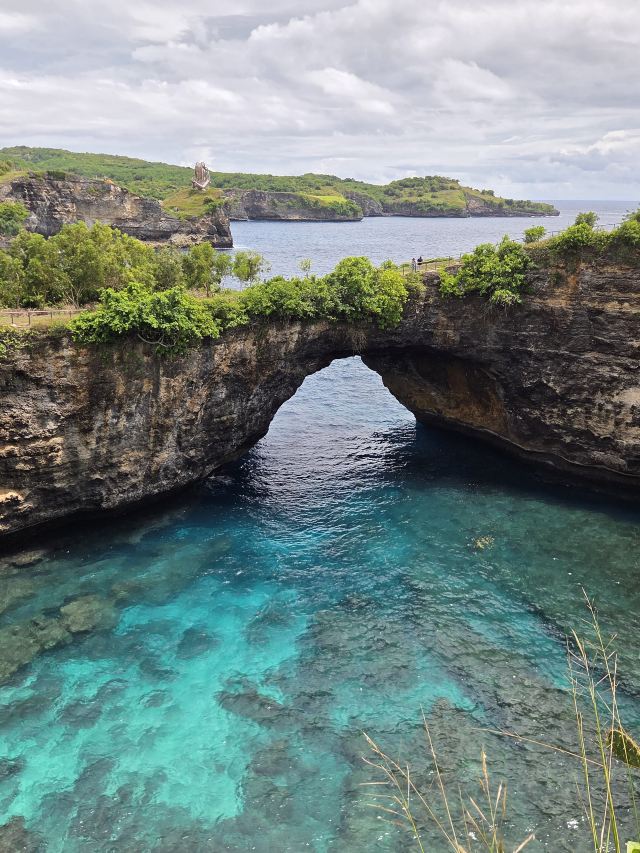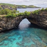 破碎沙滩位于努沙佩妮达岛,是一个以其独特地质景观而闻名的旅游胜地。这个天然形成的海湾被高耸的悬崖环绕,中间有一个天然拱门,海水通过拱门涌入,形成一个如画的泻湖。游客可以在悬崖上漫步,欣赏壮丽的海景和独特的地质结构。