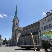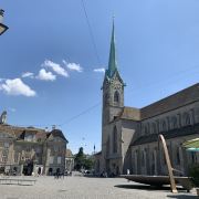 圣母教堂伫立在利马特河西岸,画家马克·夏加尔设计的彩色玻璃窗也极具标志性。