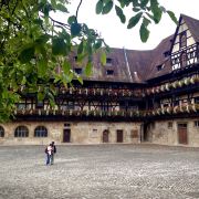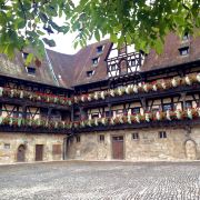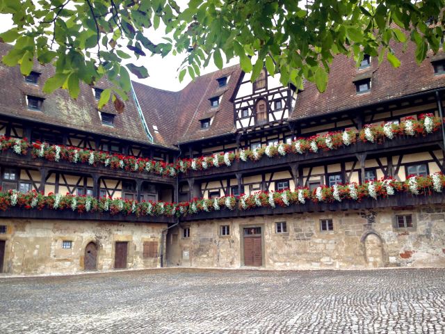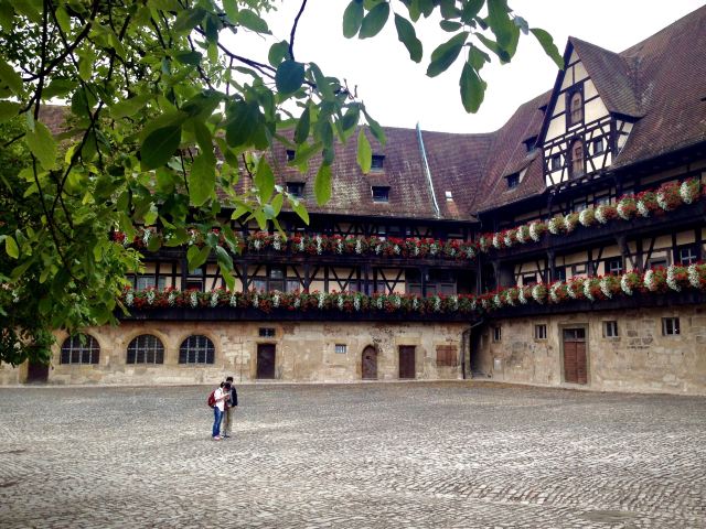 如今这里班贝格历史博物馆,可以使用巴伐利亚宫殿卡可以免费参观,这里有一个特别安静迷人的庭院,老房子上都是经典的木框架结构,还有开满鲜花的阳台,挂满了巴伐利亚风格的花饰。