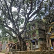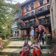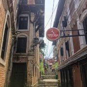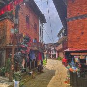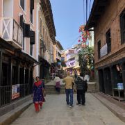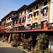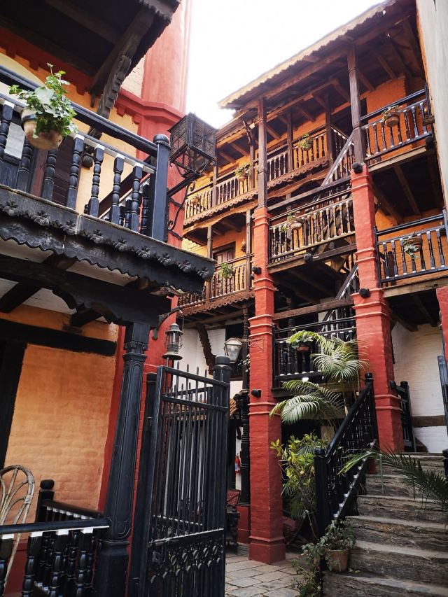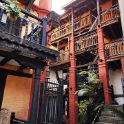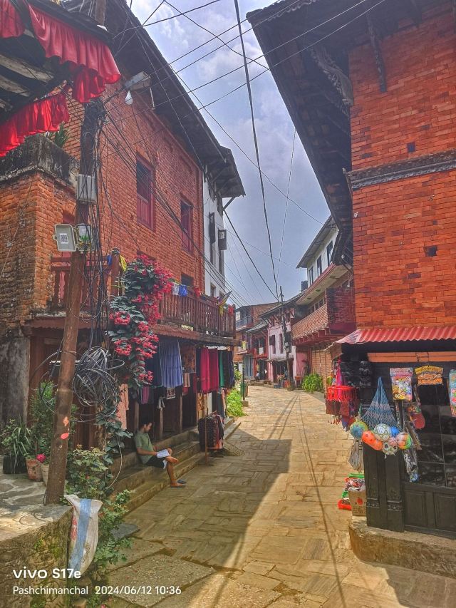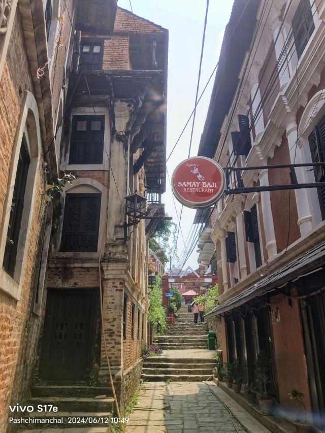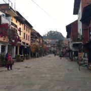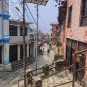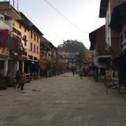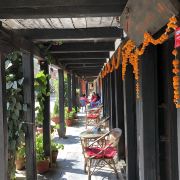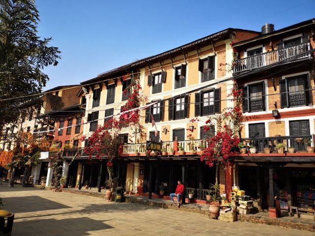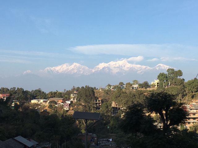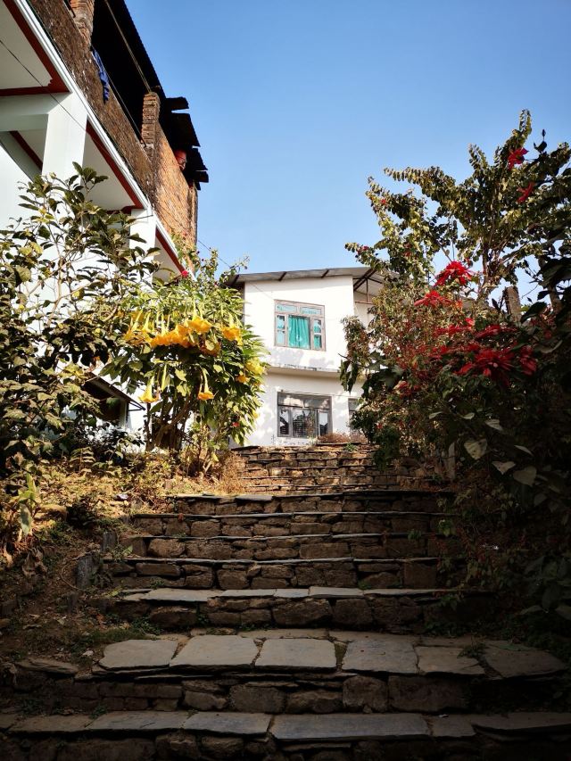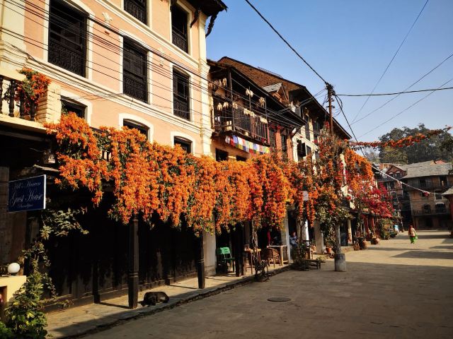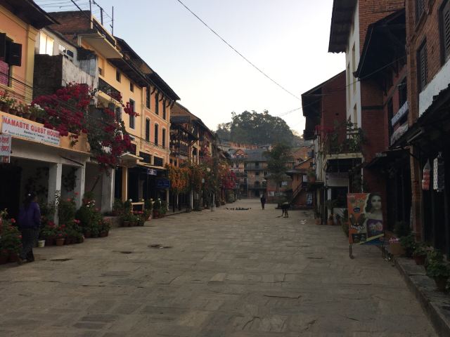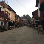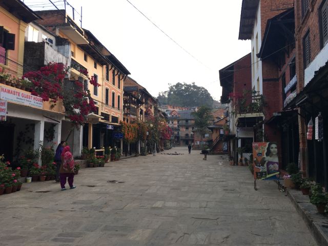 班帝普尔商业街,当地人俗称为Market,是一片面对着雪山的小街区。这里游人不多,街道上大多是闲适无比的当地人。街道的一头照例是尼泊尔随处可见的庙宇楼阁,宽阔的石板路两边错落分布着客栈、咖啡馆。坐在客栈的露台,边品尝尼泊尔的风味小吃,边欣赏远处的雪山,非常惬意。