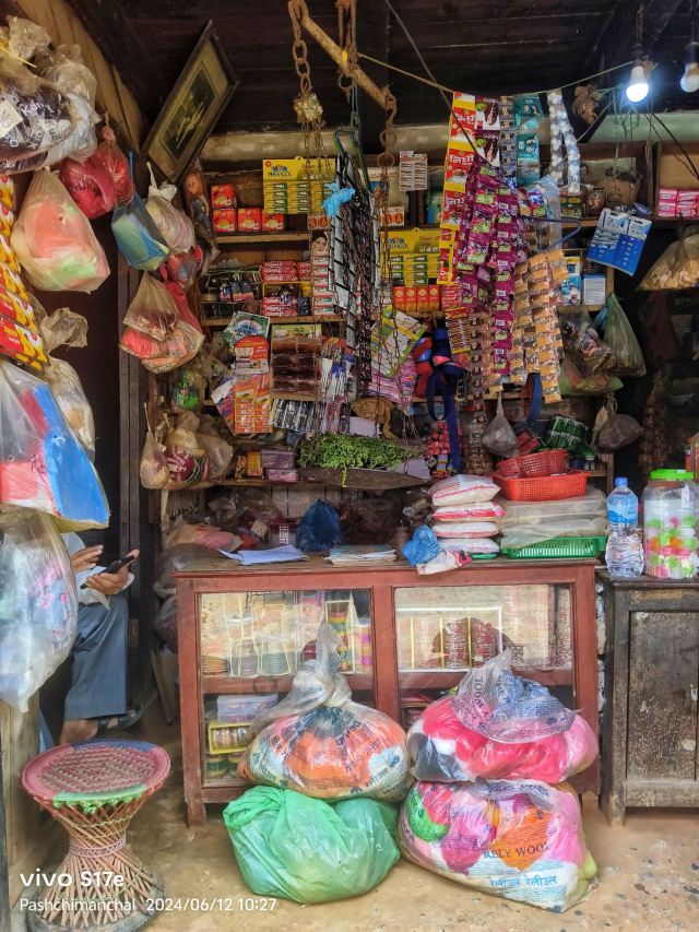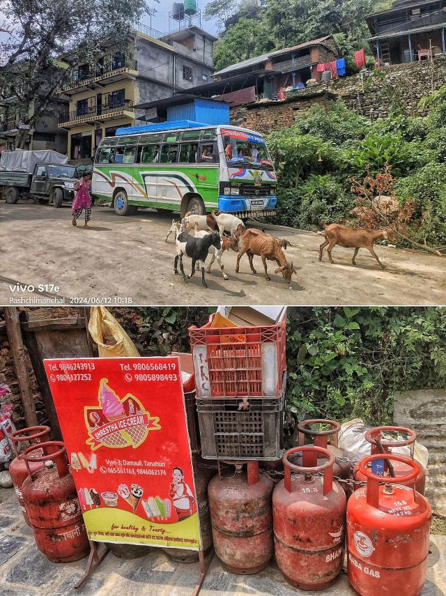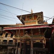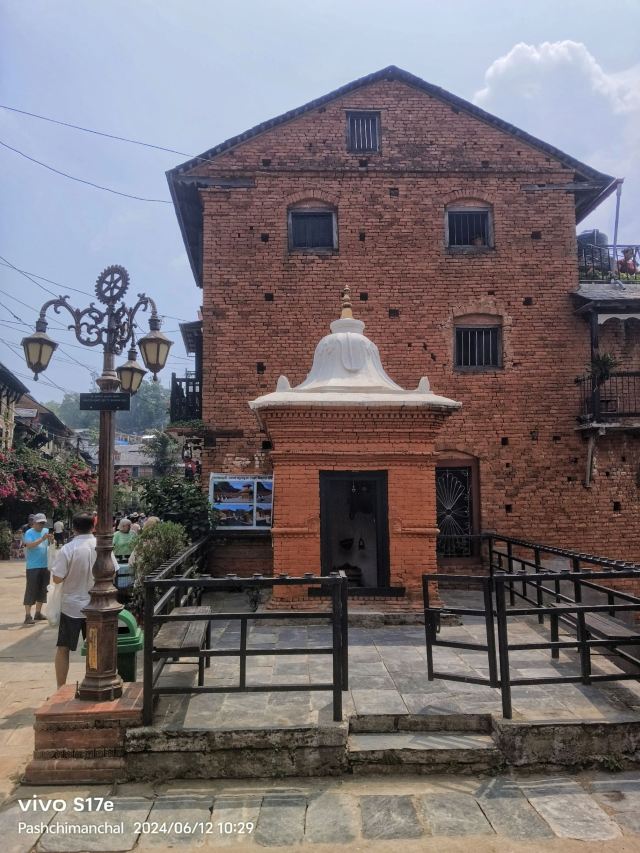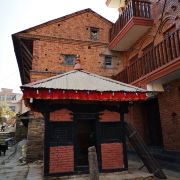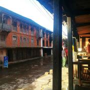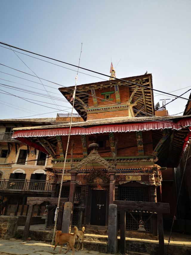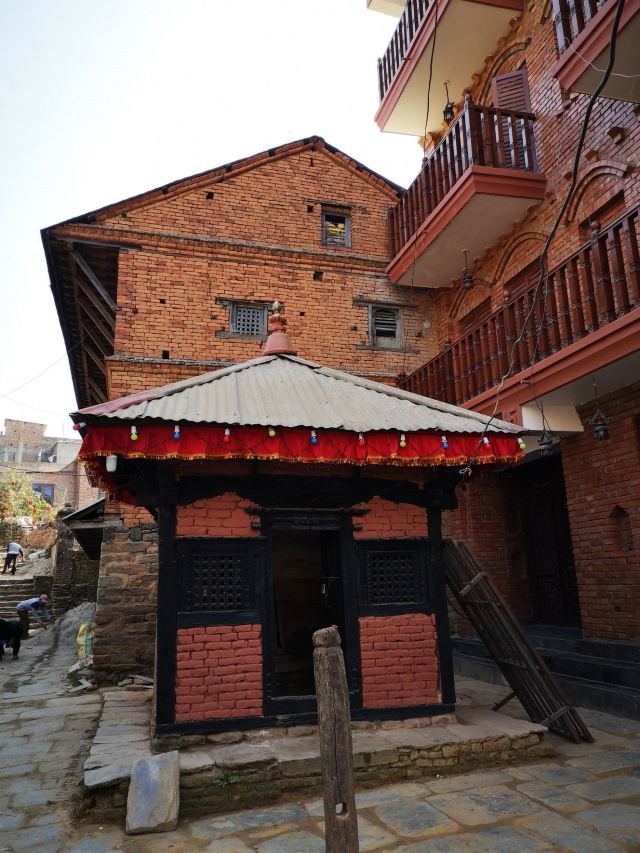 ③佛龛:路边的单栋双檐小屋。尼泊尔是佛教国家,呈现社区化的特点,大街小巷常见到大大小小类似电话亭一般存在的佛龛建筑,每天供奉大米等日常食物。此小镇的主街上共见到2座,大佛龛位于主要的十字路口处,很显眼;小佛龛在一侧小路上