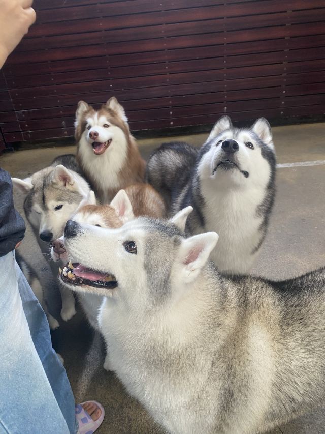 司机送到的时候我就听到各种狗吠了,入门后发现人很多,上午⏲️11点多到的就约了12点的场次,下午好像时候两场,1-2点可以进去撸 ,狗子基本是哈士奇还有几条古牧,和小哈巴。
