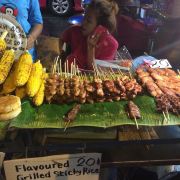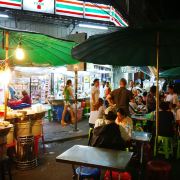 除此之外,这还有7-11超市、Bigburger以及麦当劳等超市和快餐店。麦当劳门口有一个很大的麦当劳叔叔,两只手掌合并放在胸前,游客们会经常在这里与它合影。要想体验泰国传统小吃的也可以尝试一下路边摊,这里的水果Shake、芒果糯米饭、烧烤味道都很正宗,每样都是明码标价。