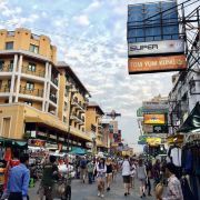 微信小程序提到曼谷,就没人不知道考山路。它是这座城市的夜生活精灵,打车时只要你大声说出Kao San,司机一定就会给你一个“我知道”的微笑。它是背包客的大本营,也是游客喜爱的游玩地点。这里街道纵横,各种档次的酒店和廉价旅馆遍布街区,临街的路边店铺,各色旅行社代理、外币兑换点,各种风味的饭店、酒吧、咖啡屋、按摩店铺以及本地特色的商品店鳞次栉比,应有尽有。要想了解曼谷的生活,来这里便一目了然。