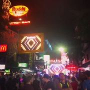 这的街道两旁有很多酒吧,走在路上都能感觉到很大的有节奏的音乐声。这些酒吧几乎都有大的液晶电视或者投影电视,时不时的会播放一些足球比赛。各个酒吧的啤酒价格都差不多,大约一瓶在50-70泰铢左右。一些露天酒吧还提供点菜,沙拉、炒饭之类的都有,价格也不贵。