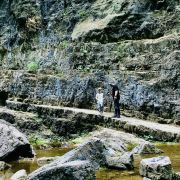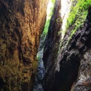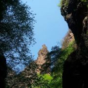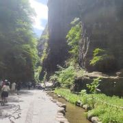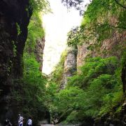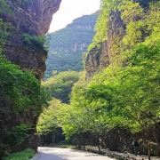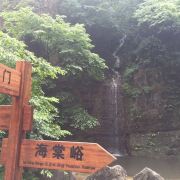 海棠峪峡谷是景区内景色较集中的地带,这里的峡谷幽深狭窄,峡谷内有溪水、深潭,还有悬挂在岩壁上的瀑布,环境优美。峡谷内有老虎嘴、爽心瀑、一天线、金线悬针、回首观音、虎泉等众多景点。其中的一线天幽狭深邃,非常壮观。回首观音则是自然形成的神似观音立像的石柱,也可以好好参观一下。另外,每到八月份,峡谷内还会有野生海棠花盛开,可以前来观花拍照。