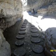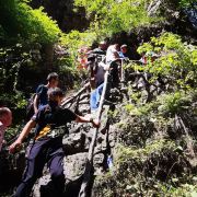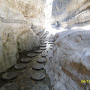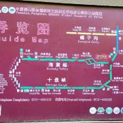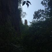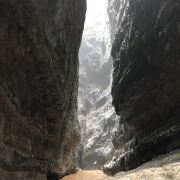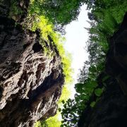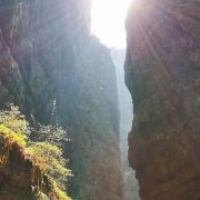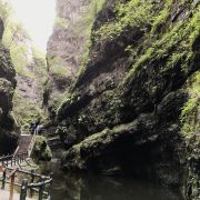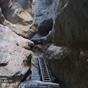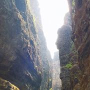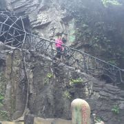 两条峡谷在深处都通向天梯,天梯是一条2800多阶的石阶路,左右两侧各有一半,中间的较高处为天亭,从两侧天梯入口爬到天亭均需要1小时左右,两侧也都有上下天亭的缆车,单程50元,乘坐两侧联程或单侧的往返均是90元。