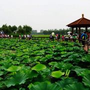 5分 超棒白洋淀荷花大观园坐落在国家 5A 级旅游区、河北省著名风景区、河北省湿地保护区安新县白洋淀景区内。 占地 2000 亩,水域面积1560亩,园中有六区、十二园、三十六景、七十二连桥,699种中外名荷,是我国植荷面积最大、品种最多的巨型生态荷园,2003年成功举办了第十七界全国荷展.园区翠柳环抱,碧水浩淼,湿地水生植物相映成趣,水生动物相伴而居,成为我国北方最大的自然生态观赏园。被河北省政府命名为省级湿地自然生态保护区野生动植物繁育示范基地。 白洋淀荷花大观园呈金元宝形,碧水蓝天、苇绿荷红、以栈桥、拱桥、浮桥、情趣桥等组成五条桥系如虹如龙,逶迤十里跨荷塘、入苇荡。园中荷花淀,是当年雁翎队战斗过的地方;莲心禅院,三面盛世莲花观音祈导平安如意,焚香静心,愿盛世观音保白洋淀人及世人富足喜乐;孙犁纪念馆,是一代文学大师仙居之所。白洋淀抗日战争纪念馆了解白洋淀抗战历史,再现雁翎队痛击鬼子、端岗楼的英雄事迹,精品荷园、极品荷园、睡莲园、百倾荷园千姿百态,如诗如画、令人陶醉;观景山、观鱼湖、神鹿岛、水上植物园、中华鳖园、蟹园、禽鸟园、沙滩浴场、湖滨垂钓园使你体验北方水乡风情;采莲、捕鱼、钓蟹让你和大自然零距离接触;划船、打水仗、放河灯、篝火晚会、水上嘉年华、水上摩托艇等娱乐活动;拓展训练为你创造精英团队提供理想场地。