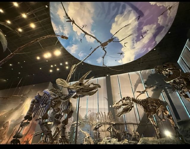 首先映入眼帘的是巨大的恐龙化石。这些曾经称霸地球的庞然大物,如今静静地躺在那里,依然能让人感受到它们曾经的威严。我仔细观察着每一具化石,想象着它们在侏罗纪时期的生活场景。讲解员的声音在耳边响起,让我了解到更多关于恐龙的知识,比如霸王龙的凶猛、剑龙的奇特防御机制,还有梁龙那长长的尾巴和脖子。