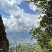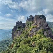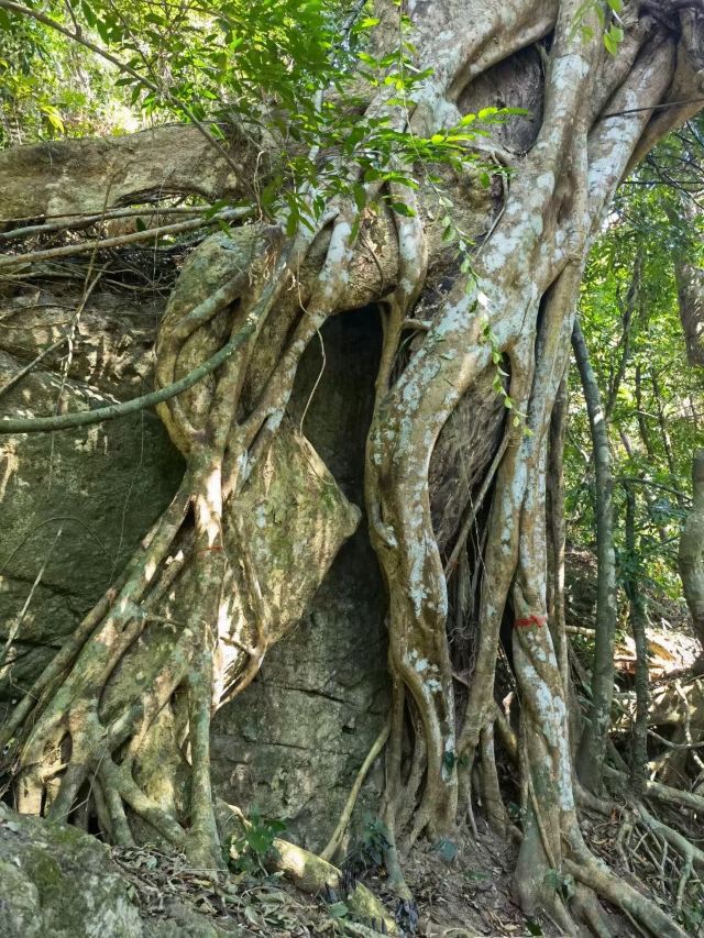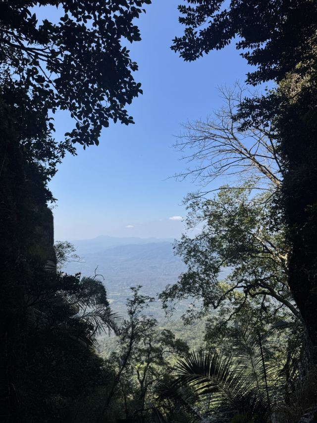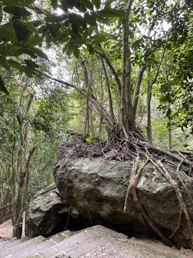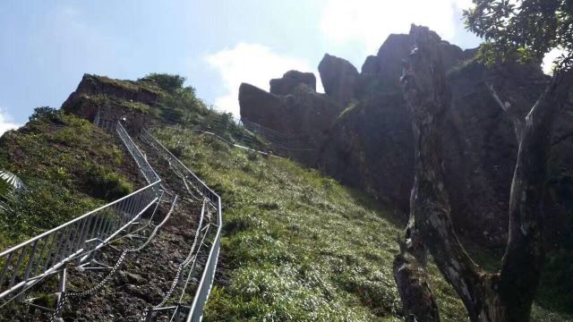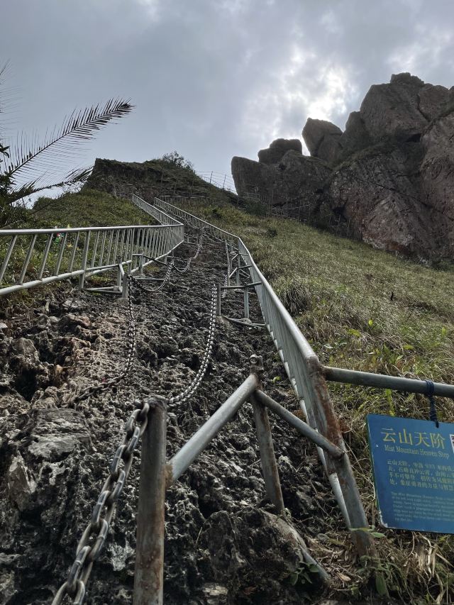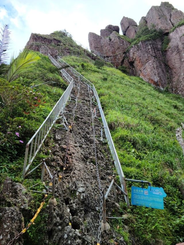 ’,路上就是陡坡、丛林和一个洞,能看到远方的景色就13/14图,不开阔,到了云山天阶也没有开阔景色,因为我穿的拖鞋,没爬云山天阶,这地方怎么上去怎么下来,想想下来太危险,算了