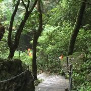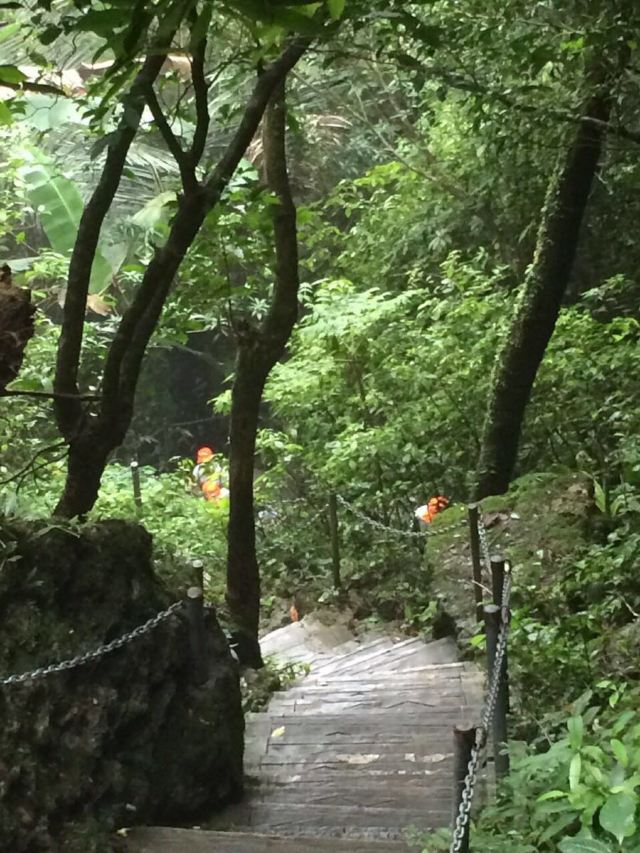 (4)下山省力就坐丛林速滑和空中玻璃漂流,但是要注意:丛林速滑下降400米,终点在云梯第2阶段结束的地方,也就是说:850米的云梯票结束后,如果不爬山,是坐不了丛林速滑的。从丛林速滑结束后往下走400米是空中玻璃漂流的入口,空中玻璃漂流下降300米,期间路上能看到情人树、七仙瑶池。