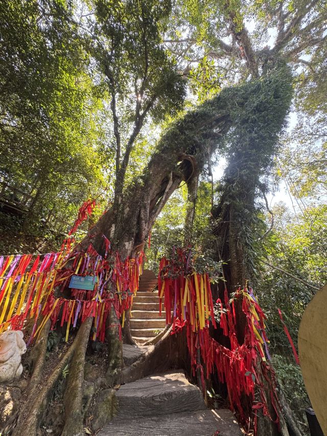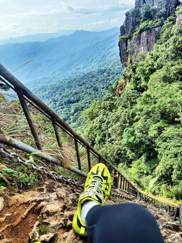 5分 超棒上午:抵达七仙岭温泉国家森林公园,乘坐七彩云梯上山(不想爬山可全程乘坐,云梯分为四个阶段,850米的票可坐2个阶段,1800米的票可坐4个阶段 ),欣赏热带雨林景观,如桫椤树、鸟巢蕨、见血封喉等珍稀植物,感受雨林六大奇观。