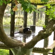 5分 超棒今天这趟熊猫基地加上峡谷徒步之行,90多元实在且开心。早上接近9:00就入了基地,没走多远(200多米)就到了白熊坪,远远地就看着有成年的大熊猫在平台上表演般地吃着竹子🎋或者是慵懒悠闲地趴着,甚至是在嘲笑两脚兽般地望着你!在回味与期待的思绪中迅速移步到了熊猫幼儿园,看到了熊猫妈妈与她的宝仔(们)也在一起幸福地干着早饭,近距离的观看着她们从容而可爱地撕竹子嚼竹叶,真的感觉是一群群孩子。特别兴奋地是毫无思想准备地看到了星怡和星秋的互动玩耍,其中一个在早上轻轻松松爬上了树,那麻溜劲好可爱。去到海归园的时候已经是11点多,最让游客们兴奋的是贝贝(但是我看那介绍是香香)在面面前清脆地吃胡萝卜🥕,接着笋笋,窝头再最后是竹子,一整套流畅的午餐动作,呆萌,优雅而自然,换着不同的角度表演着午饭的工作,不得不让人怀疑这毛孩子天生就是明星演员。(12:00被老公逼着停下观猫,等餐后再去看时大都午休了)碧峰峡的大熊猫总体都不够白甚至有点儿脏(据说是没有人为地清洗),但他们真的都蛮可爱,大都不仅懂得卖萌营业还懂午休。所以我们中午离开的时候不时听到有人在说我们的国宝好懒哦,不是睡了就是趴着。但是他们哪怕睡觉也会让你惊叹咋个那么乖哟!不信,看看我对豆豆睡觉的几连拍,林冰睡得更是四脚朝天……也许对于爱大熊猫的人来说,他们的无论哪个动作都是超级可爱,都能治愈一切