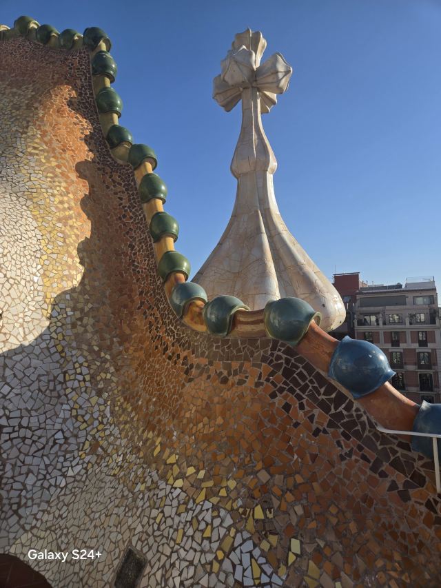 △ 整栋楼的外墙面贴着彩色的马赛克、屋顶的样子酷似龙鳞,处处充满了魔幻色彩。翻修后的巴特罗之家,完全呈现出一派高迪式的大自然魔幻色彩,于2005年入选世界文化遗产名录。