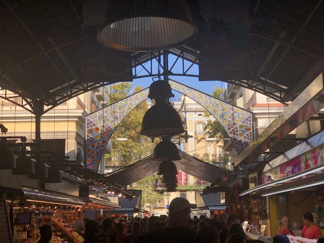 5分 超棒走过圣保罗街、波盖利亚街和兰布拉街交汇的波盖利亚小广场,一定要留意脚下的彩色马赛克拼图,那是现代主义大师胡安·米罗的作品