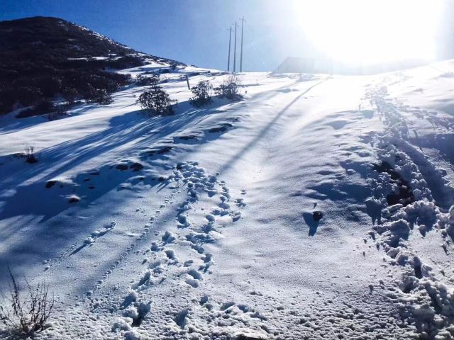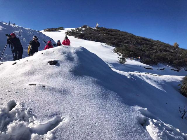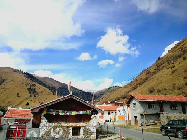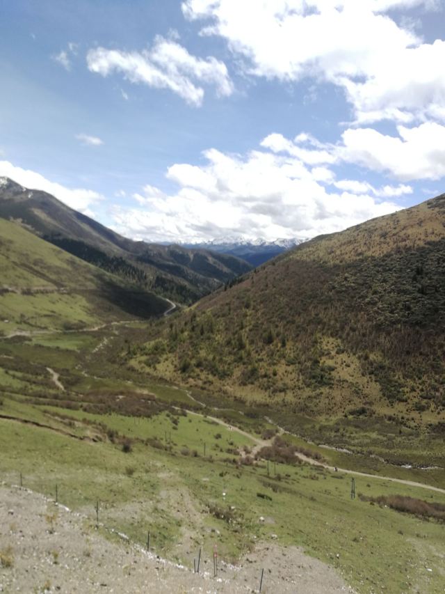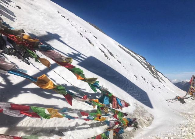 4分 满意美丽的阳光照耀下, 经幡、 雪山、 蓝天白云、总让人赏心悦目。途径海拔4114米的梦笔山